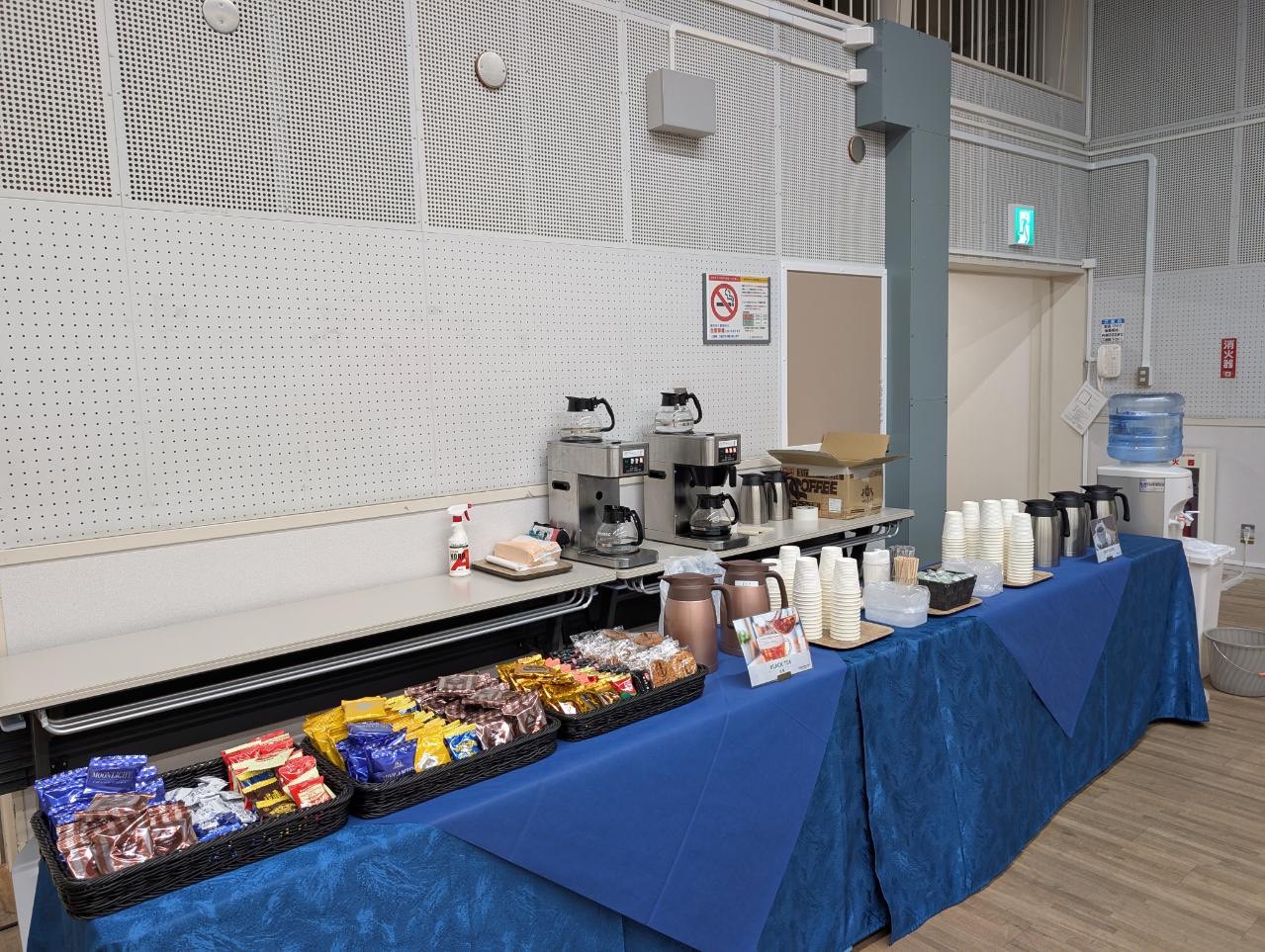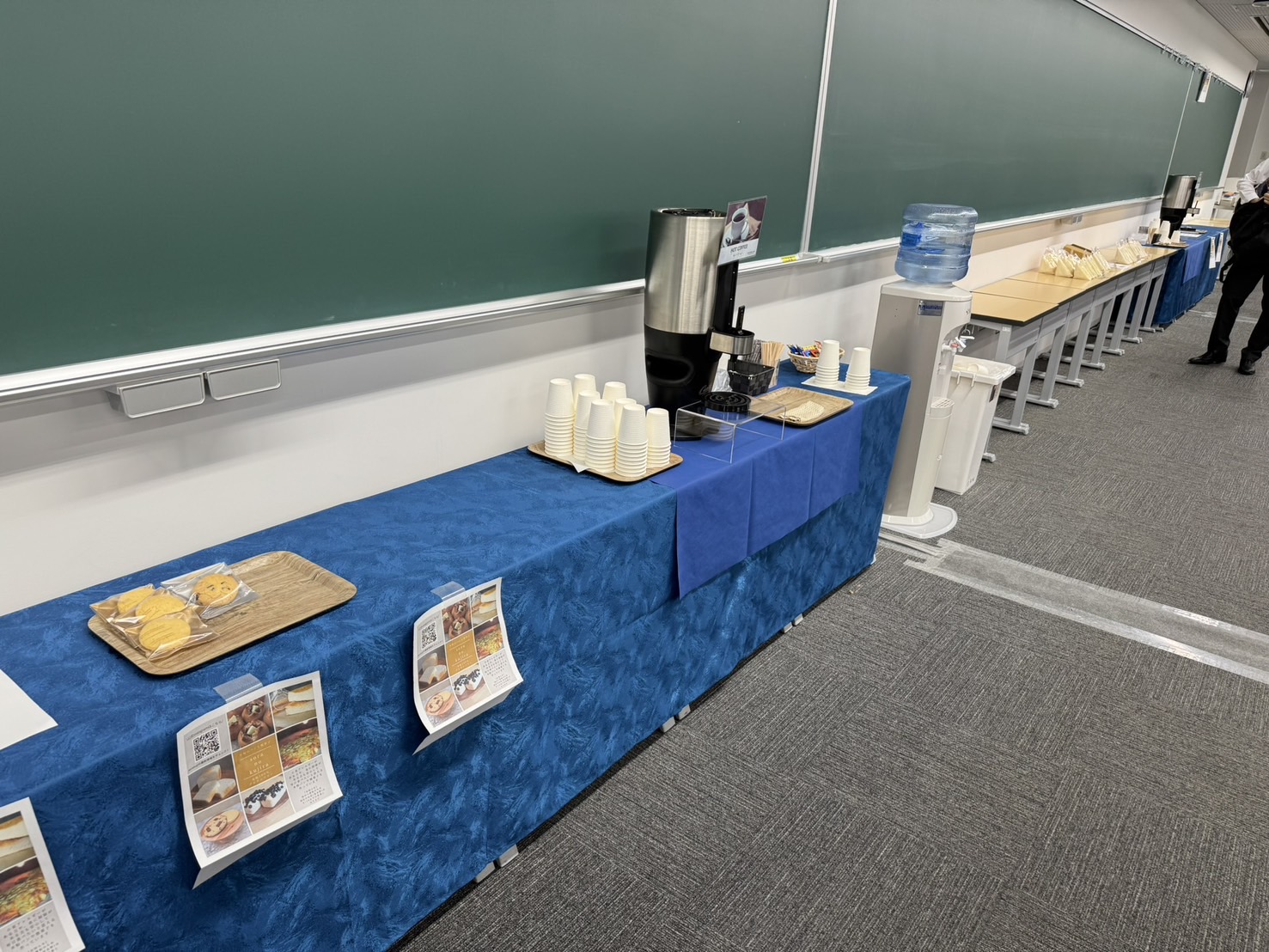 コーヒー、紅茶、ウォーターサーバー、お茶菓子をご提供致しました。4階講堂で会議を行い、こちらのお部屋でポスターセッションが開催されていました。海外からの方が過半数で、コーヒーのご提供に喜んでおられました。