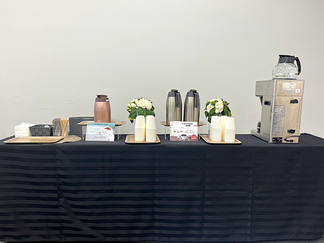 今回は会義中に2回のコーヒーブレイクを予定しておりますが、参加者様は各々のタイミングでコーヒー・紅茶をご利用になります。