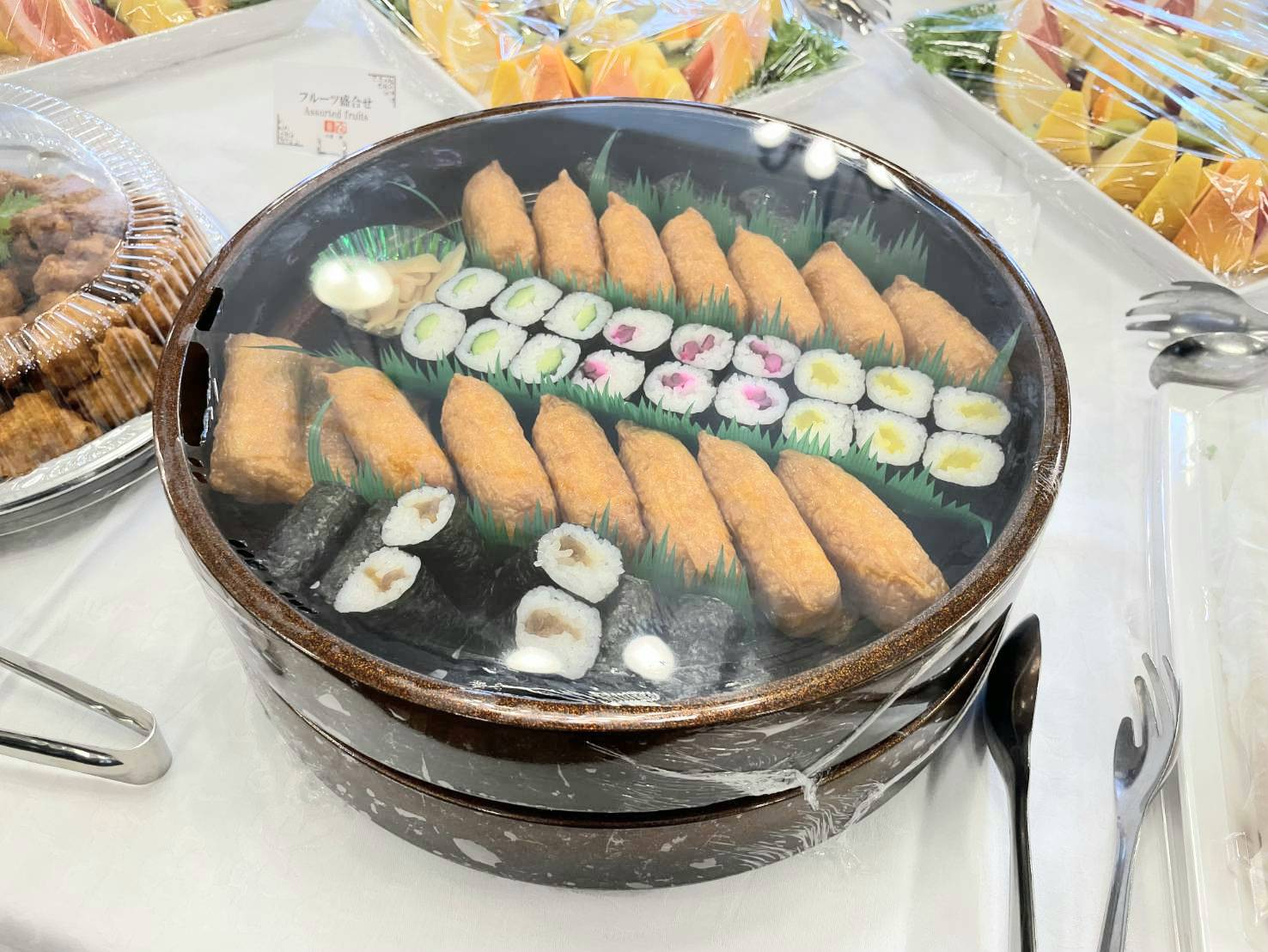ヴィーガン向けに稲荷&野菜海苔巻きをご用意させていただきました。