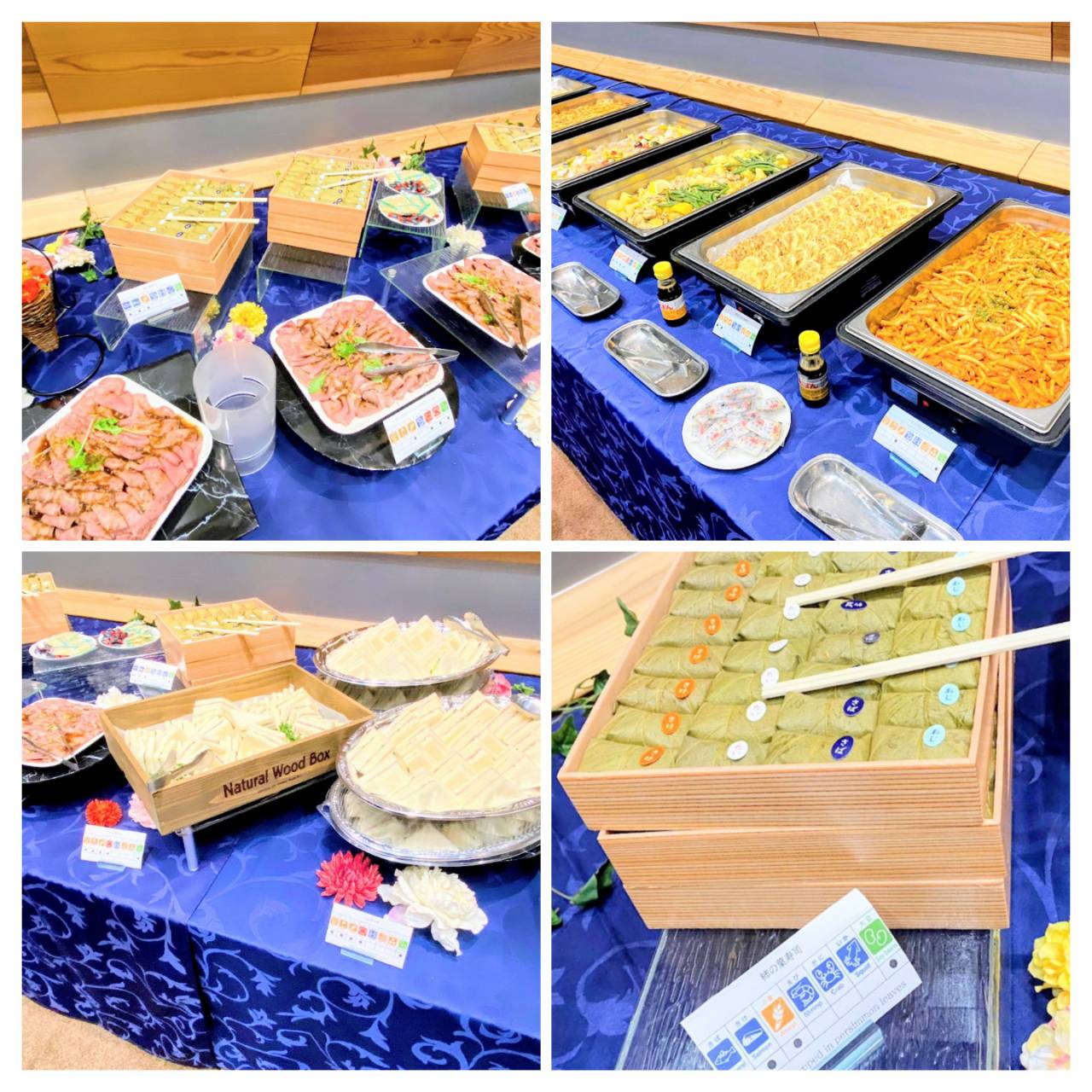 お料理は、フィンガーフードや奈良ご当地の柿の葉寿司、デザート、温製料理を5種類をご用意させていただきました。