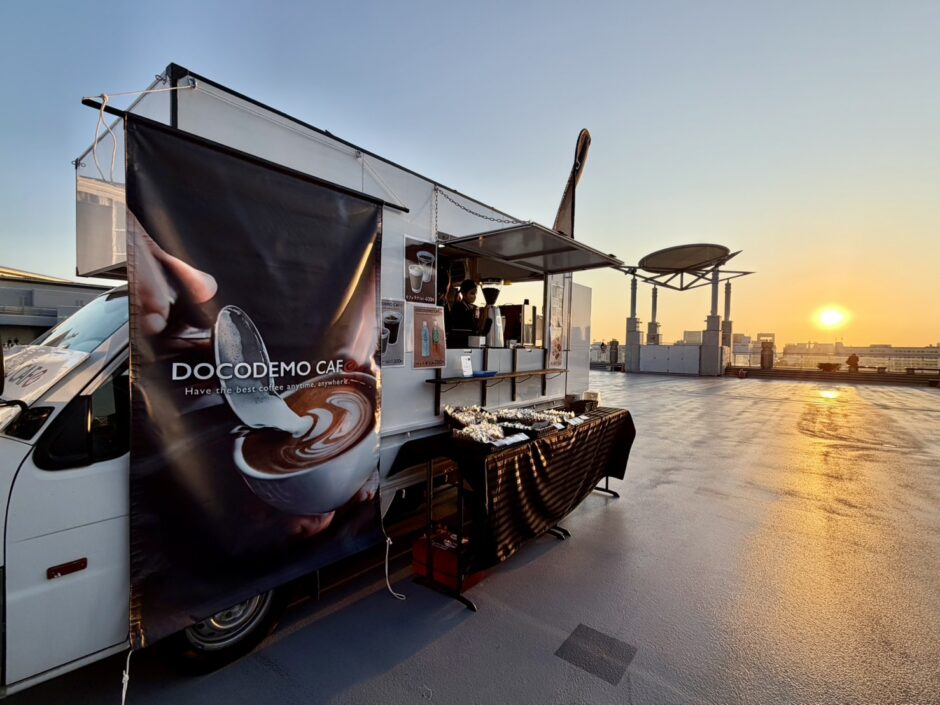 今回は東京ビッグサイト西ホール4Fの駐車場にコーヒートラックを設置し、カフェをオープンしました。