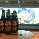 講演会会場で参加者用にミネラルウォーターをセット。