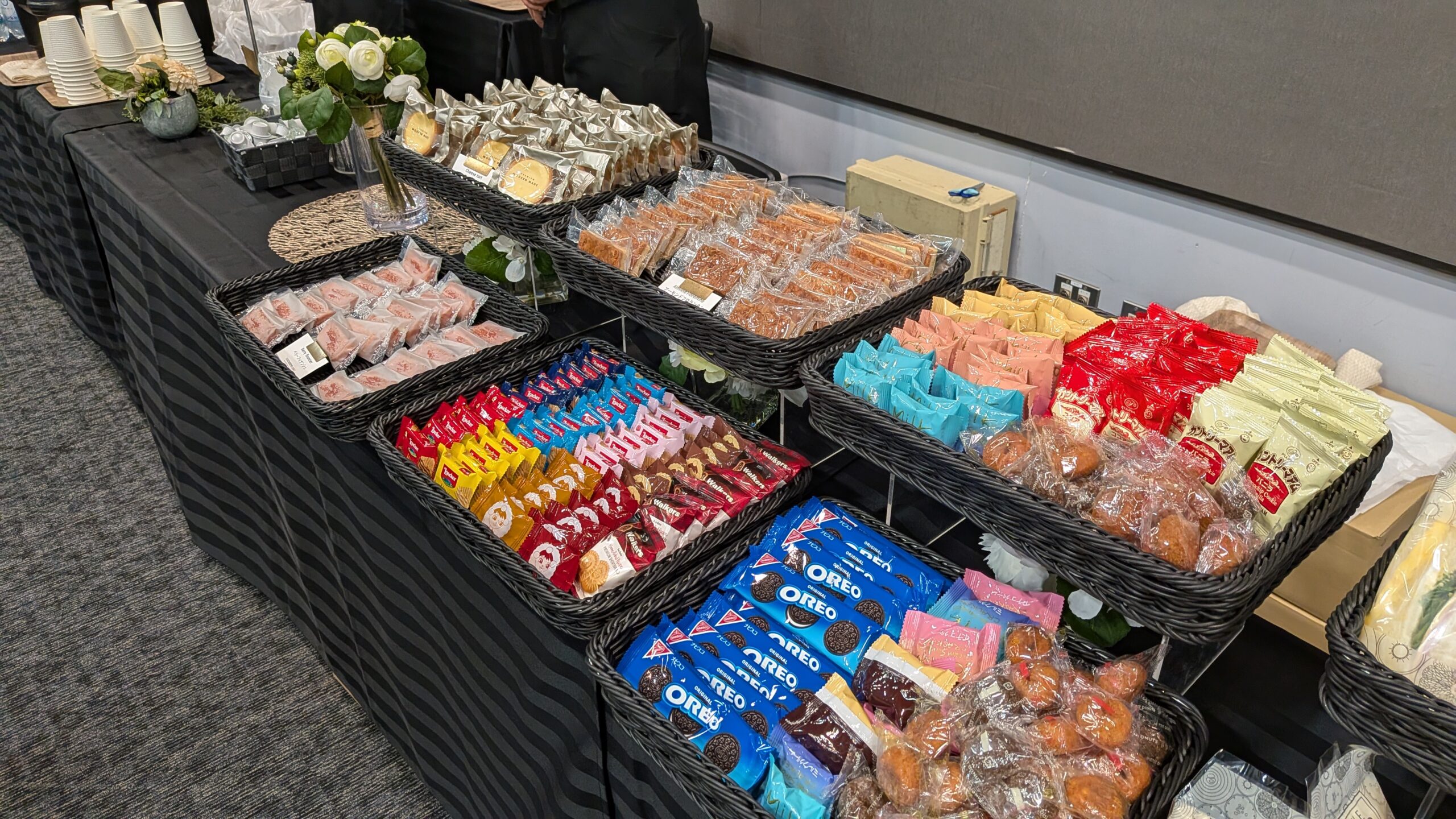 ドリンクの他にサンドイッチやスナック、焼菓子を取り揃え。主催者様からの心温まるホスピタリティが感じられます。