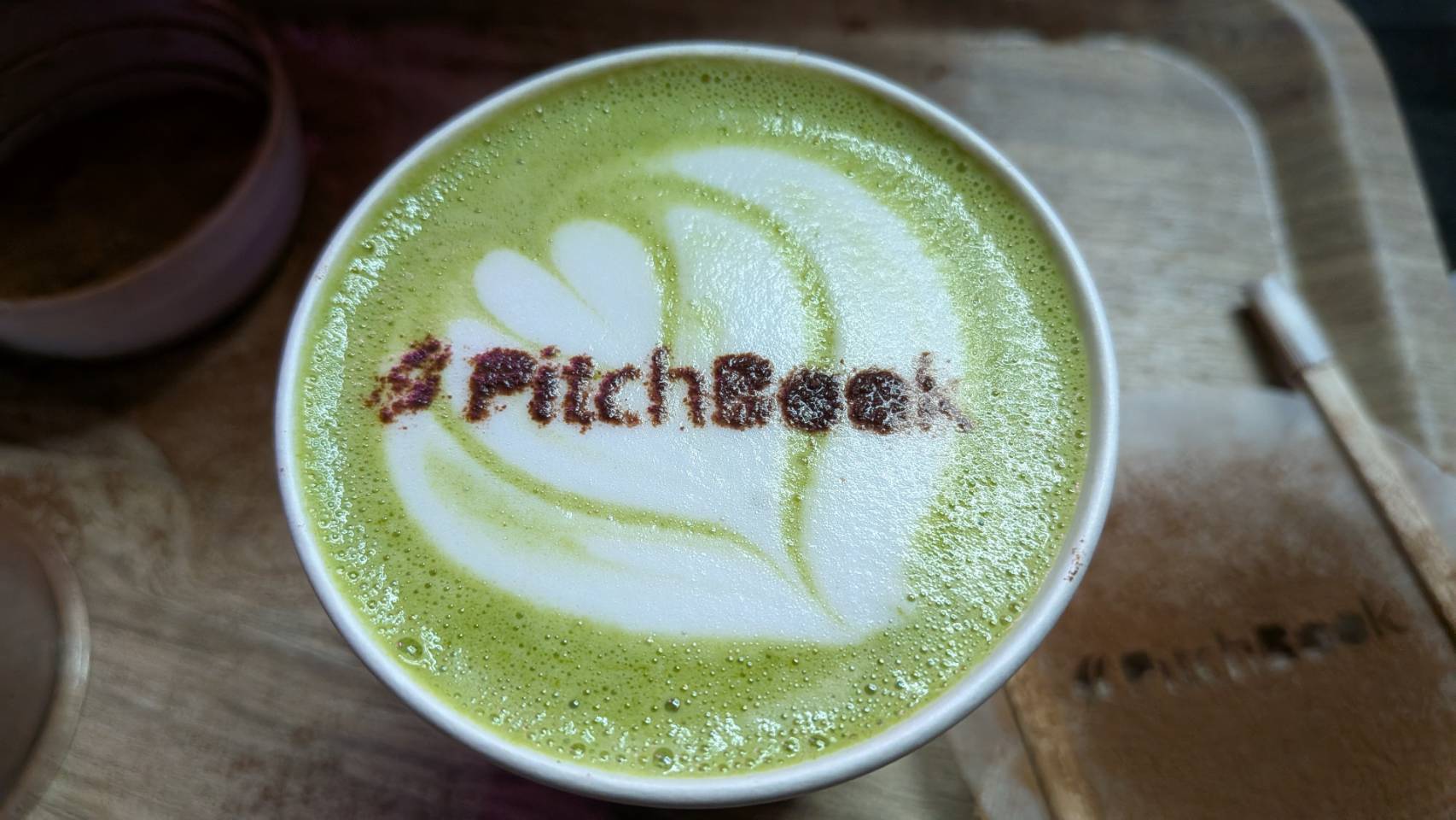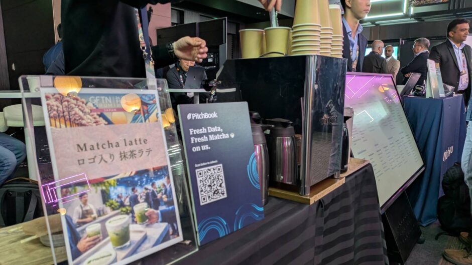 企業ブースで提供したロゴ入り抹茶ラテ